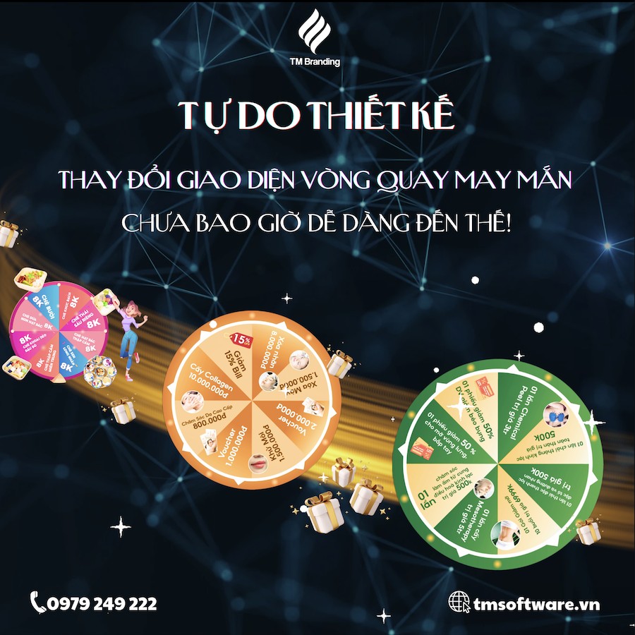 Tuy nhiên, với tính năng “tự quản trị” mới của TM Software, bạn sẽ có thể thực hiện những thay đổi một cách nhanh chóng và hiệu quả, tiết kiệm được cả thời gian và chi phí. TM Software hiểu rõ rằng một trong những thách thức lớn nhất mà khách hàng thường gặp phải là việc muốn thay đổi giao diện của vòng quay may mắn, nhưng lại lo lắng về chi phí, thời gian và sự rắc rối khi phải thảo luận với công ty.