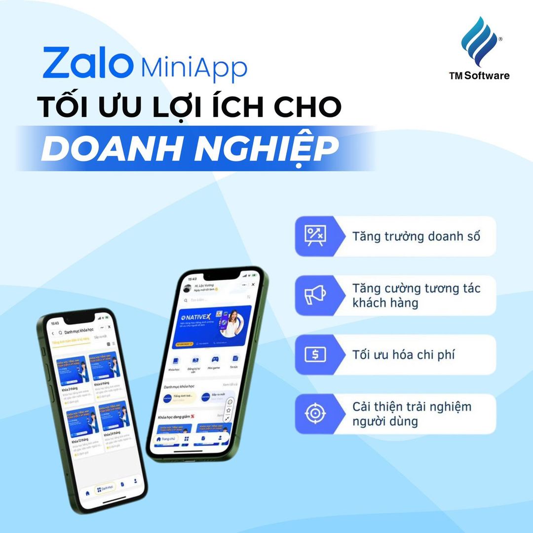 Zalo Mini App là giải pháp hiệu quả cho doanh nghiệp, giúp tiếp cận khách hàng trên nền tảng Zalo với chi phí thấp, dễ tích hợp và tùy biến cao. Tăng cường tương tác và doanh số, cải thiện trải nghiệm người dùng. Liên hệ TM Software để tư vấn miễn phí!